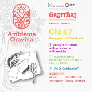 Con il lancio di Chi è?, una nuova e innovativa iniziativa rivolta agli adolescenti di età compresa tra i 12 e i 14 anni, continua il progetto “Ambiente Gravina” dell’Associazione Grott’Art – APS di Grottaglie.