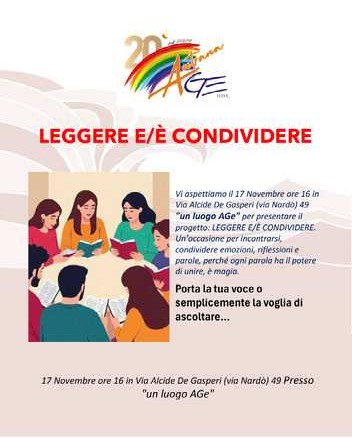 Sarà presentato lunedì 17 novembre alle 16:00 in via Alcide De Gasperi, 49 presso “un luogo Age” ad Avetrana il progetto dell’Associazione Genitori di Avetrana – ODV dal titolo Leggere e/è condividere: una proposta di incontri di lettura e socializzazione per chi ama i libri e crede nel loro valore etico-formativo.