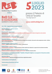 Il “Red – Reddito di dignità”, misura promossa grazie ai fondi della Regione Puglia e attuata dall’Ambito del Comune di Taranto, è giunta a conclusione. I risultati del progetto saranno presentati durante un convegno che si terrà mercoledì 5 luglio alle 17:00, nel Salone degli Specchi di Palazzo di Città a Taranto.