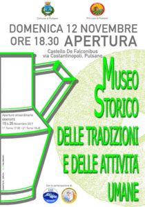 Riapre il museo della Civiltà Contadina a Pulsano, con una cerimonia inaugurale che si terrà domenica 12 novembre alle ore 18:30 in una nuova location, presso il primo piano del Castello De Falconibus e soprattutto in una veste del tutto rinnovata.