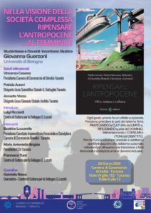 L’evento Nella visione della società complessa ripensare l’Antropocene, organizzato dal Centro di Cultura per lo Sviluppo G. Lazzati Aps-Ets Taranto, Camera di commercio di Brindisi-Taranto ed i Licei Statali Scientifico Battaglini e Ginnasio Archita di Taranto cercherà di inquadrare la visione dell’era moderna.