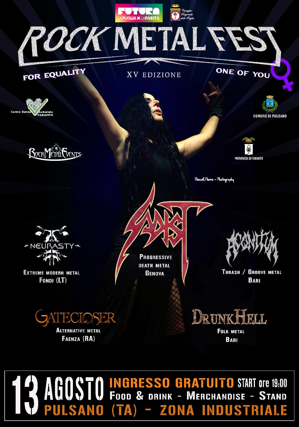 In questa edizione l’iniziativa abbraccia una tematica di grande attualità: “la parità di genere”. Il progetto è finanziato dal Consiglio regionale della Puglia nell’ambito dell’Avviso “Futura. La Puglia per la parità – 3^ edizione” e l’’associazione Rock Metal Events ODV contribuisce alla campagna di sensibilizzazione che partirà dai primi giorni di agosto e ci accompagnerà fino appunto al 13, data in cui ci sarà il concerto finale che quest’anno prende il nome di Rock Metal Fest for equality one of you!