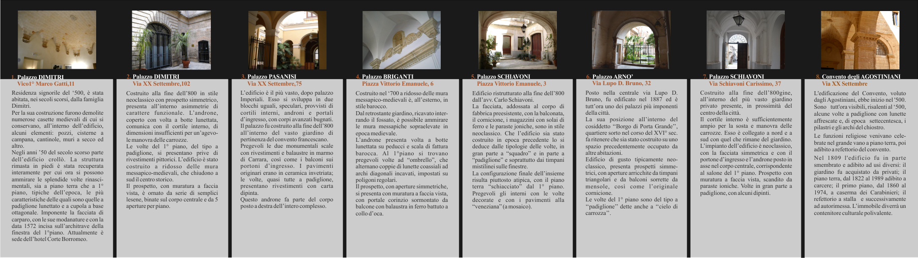 Presso ognuno degli androni saranno disponibili delle brochure con le indicazioni sull’itinerario e cenni storici sui singoli palazzi.