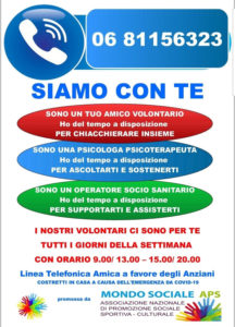 Da oggi, Mondo Sociale aps, associazione di promozione sociale con sede a Roma e presente in quasi tutte le regioni d’Italia, ha istituito un servizio di telefonia