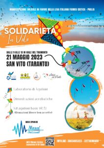 A sostegno dell’associazione “LIFC Puglia – ONLUS”, attiva nella lotta alla Fibrosi Cistica, si terrà domenica 21 maggio l’evento Solidarietà in volo finalizzato alla raccolta fondi per finanziare la ricerca sulla malattia, supportare i pazienti affetti da Fibrosi Cistica, le loro famiglie e i Centri di Cura.