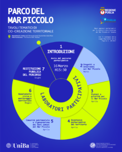 Il Dipartimento Jonico dell’Università degli Studi di Bari Aldo Moro organizza i Tavoli Tematici di Co-creazione Territoriale del progetto “Nuovi approcci partecipativi per la tutela e valorizzazione del Mar Piccolo di Taranto”, con il sostegno della Legge Regionale della Puglia n. 28/2017 – iniziativa #PugliaPartecipa.