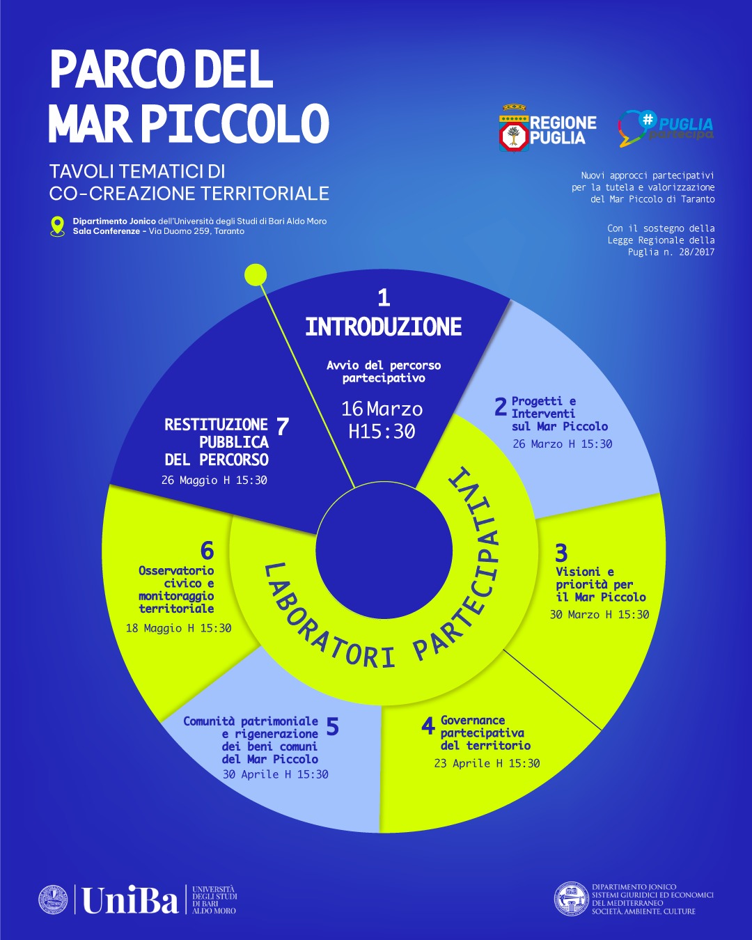 Si terrà giovedì 26 marzo alle 15:30 presso la Sala Conferenze del Dipartimento Jonico dell’Università degli Studi di Bari Aldo Moro, Via Duomo 259, il secondo incontro dei Tavoli Tematici di Co-creazione Territoriale .
