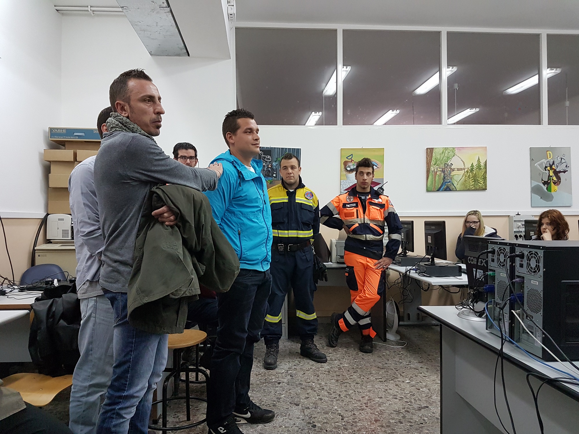 Gianni Genco ha raccontato questa importante esperienza di “comunità” che è la Casa del Volontariato e poi ha condotto gli studenti a esplorare l’ambito della protezione civile anche attraverso una breve simulazione realizzata con il supporto dei volontari di A.R. 27 – Sermartina.