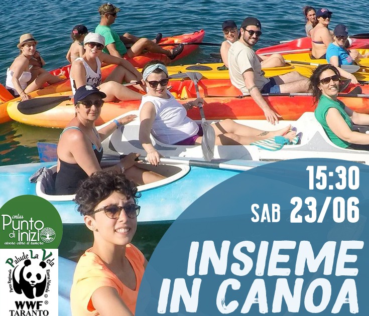 Accompagnati dalle guide del WWF, l’Associazione PUNTO DI INIZIO organizza per sabato 23 giugno un pomeriggio in canoa alla scoperta del Mar Piccolo.