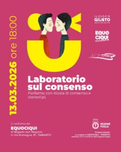 Il primo di questi laboratori si terrà venerdì 13 marzo alle 18:00 in presso la sede di Equociqui in Via Romagna 13 a Taranto.