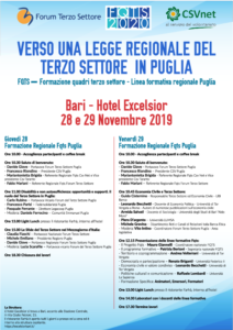 Il Forum del Terzo Settore Puglia e Csv Net, insieme a principali attori regionali del terzo settore e Fqts (Formazione quadri Terzo Settore), organizzano la convention dal titolo Verso una legge regionale del Terzo Settore in Puglia.