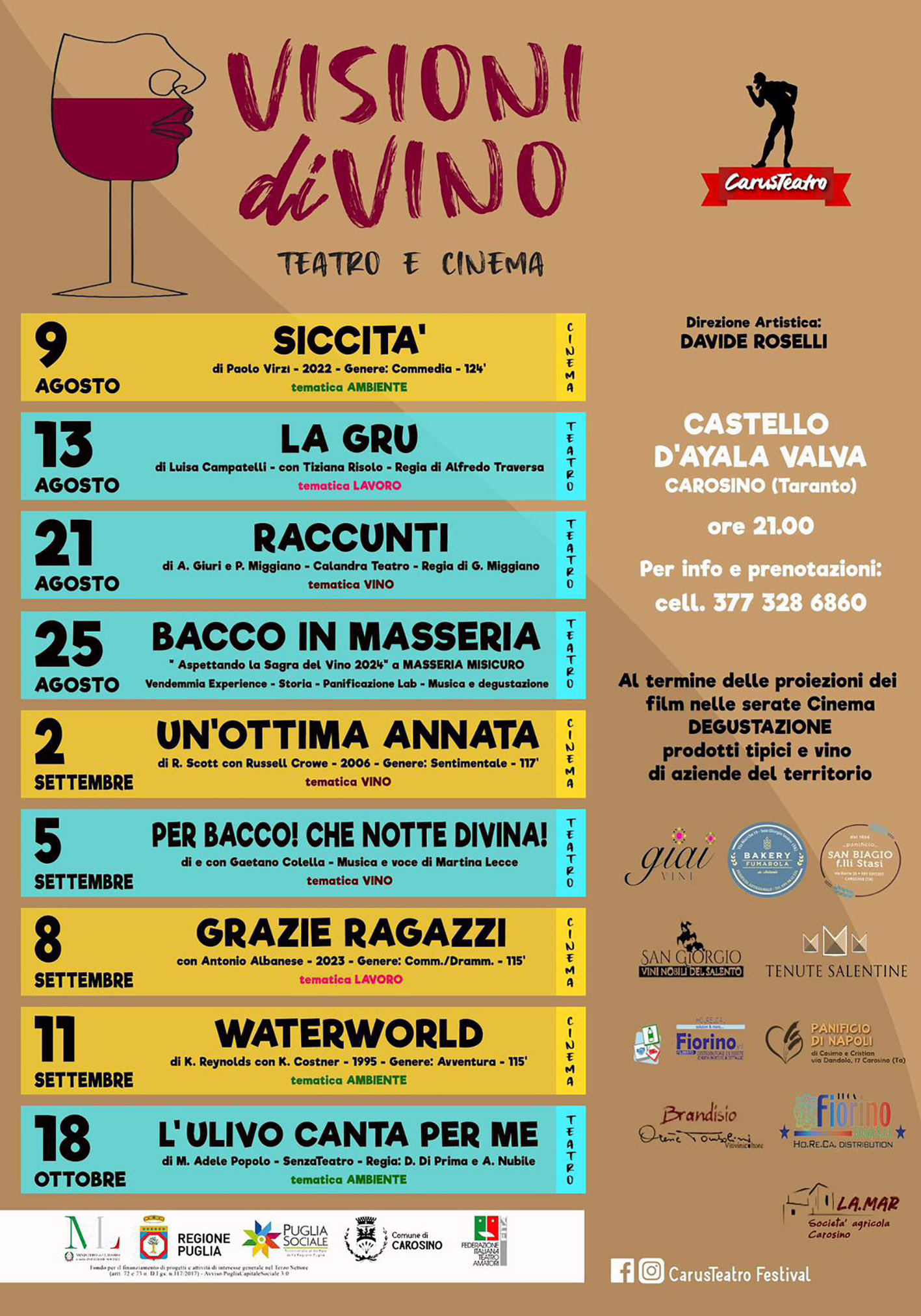 Il progetto “Visoni di… Vino” di CarusTeatro Aps è finanziato dal Fondo per il finanziamento di progetti e attività di interesse generale nel Terzo Settore (artt. 72 e 73 n. D.Lgs. n. 117/2017) – Avviso PugliaCapitaleSociale 3.0.