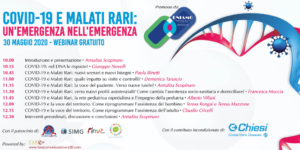 La Federazione Italiana Malattie Rare onlus promuove per il prossimo 30 maggio dalle 10:00 alle 13:00 il webinar gratuito sul tema della condizione di “Emergenza nell’Emergenza” vissuta dalle persone con malattia rara a causa del covid19.