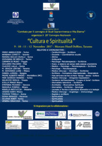 Ha preso il 9 novembre e proseguirà fino a domenica 12 novembre il 20° Convegno Nazionale organizzato dall’ Associazione “Comitato per il convegno di studi Sopravvivenza e Vita Eterna” con il patrocinio del CSV Taranto.