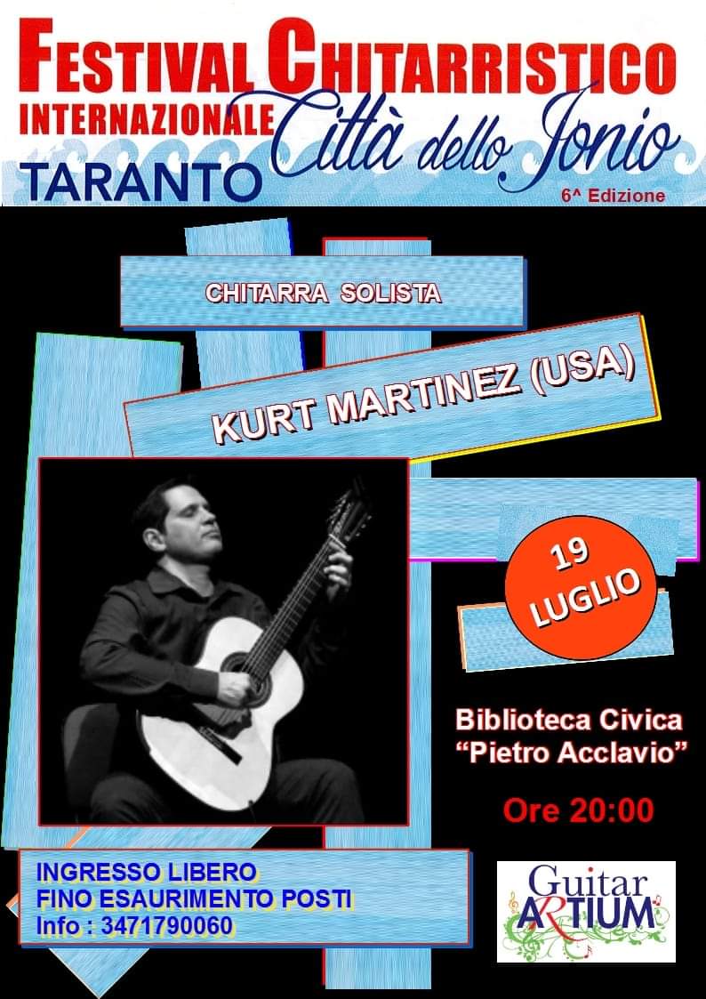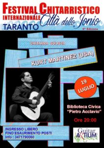 Di scena il chitarrista statunitense KURT MARTINEZ con musiche di autori variegati nei generi e nelle epoche.