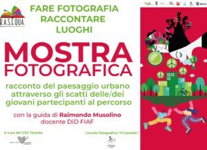 Insomma un impegno corale che ha visto il costante supporto del C.S.V. Taranto e dell’Amministrazione Comunale con la Biblioteca Acclavio, capofila del progetto, e che si corona il prossimo 8 giugno con l’evento Ritroviamoci. Scatti, Visioni e Luoghi, che seguirà il seguente programma.