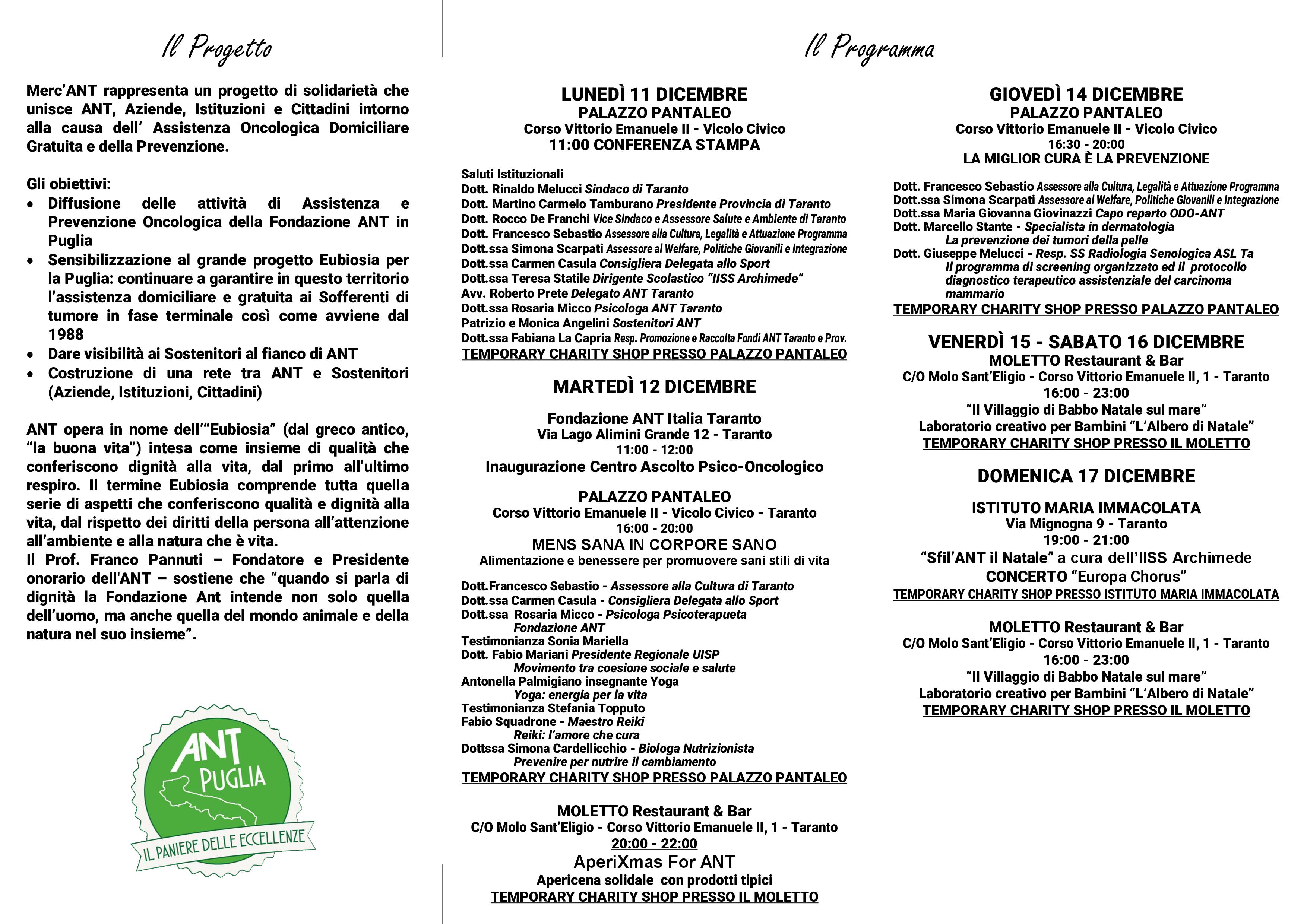 • 17 dicembre Merc’ANT si concluderà con l’evento Sfil’ANT di Natale dell’IISS Archimede e Concerto dell’Europa Chorus presso l’Istituto Maria Immacolata in via Mignogna, 9