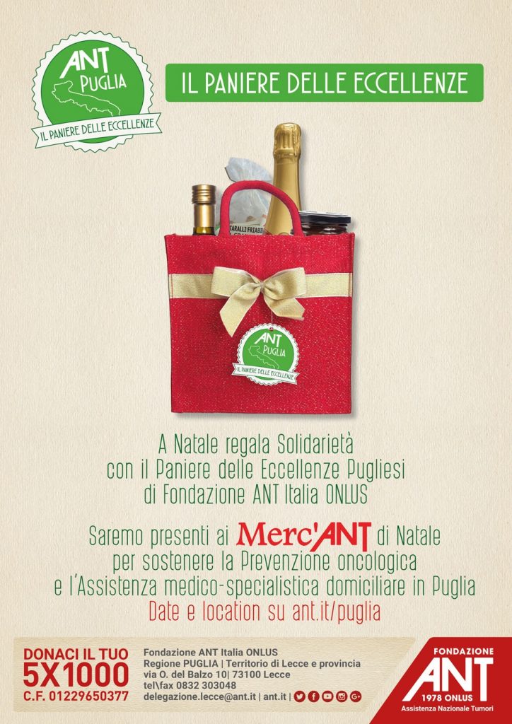 Scegliere il Paniere delle Eccellenze come omaggio natalizio significa dare un contributo alla qualità della vita di tanti cittadini che, grazie ad ANT, potranno ricevere cure specialistiche domiciliari o controlli gratuiti per la diagnosi precoce di diverse patologie. Realizzato in 1500 pezzi, permetterà ad ANT di raccogliere 30.000 euro da destinare alle attività gratuite di assistenza specialistica domiciliare ai malati di tumore e prevenzione oncologica ANT in Puglia.